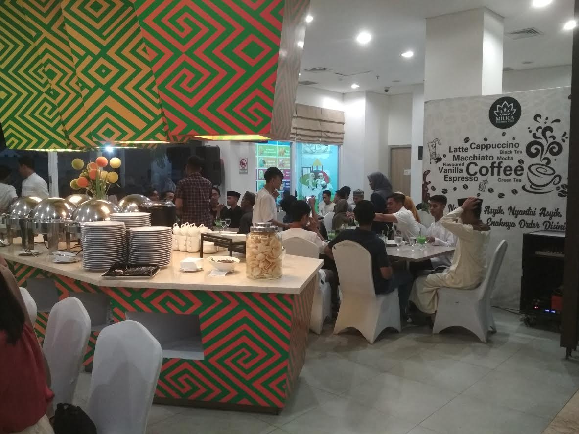 Acara buka puasa tersebut diikuti 170 mahasiswa Program Studi Manajemen Divisi Kamar bersama para dosen-dosen serta direktur kampus.