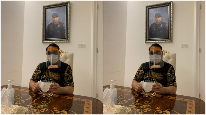 Komjen (Purn) Syafruddin mencoba 2 alat pelindung diri atau APD karya mahasiswa dan dosen Teknik Industri FTI UMI