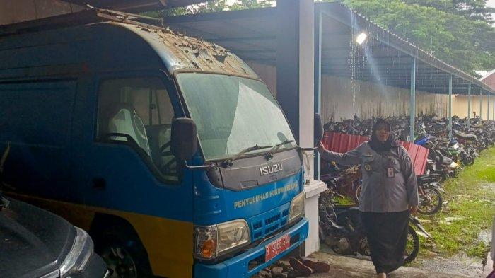 Kepala Divisi Peraturan Perundang-undangan dan Pembinaan Hukum (P3H) Kanwil Kemenkumham Sulawesi Selatan, Heny Widyawati, meninjau kondisi mobil
