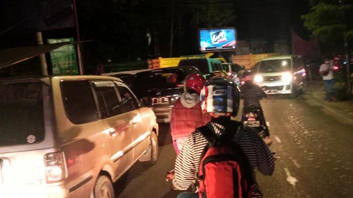 Kemacetan kendaraan terjadi jalan poros Makale-Rantepao, tepatnya disekitar SPBU Mandetek, Tana Toraja, Selasa (8/6/2021) malam.