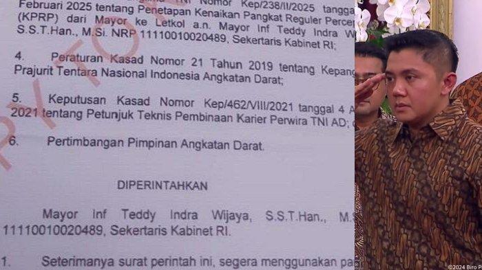 Bocor Surat Perintah TNI Kenaikan Pangkat Seskab Mayor Teddy Jadi Letnan Kolonel