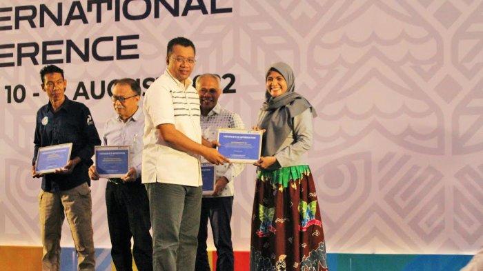 Wakil Bupati Maros Suhartina Bohari menerima penghargaan sebagai Kepala Daerah Wanita, Inspirasi Geopark Indonesia : Women Empowerment.