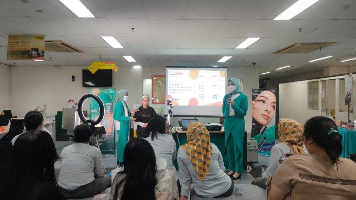 beauty promotor wardah mengajarkan karyawan Bank Danamon makeup untuk bekerja sekaligus edukasi skincare yang baik dan aman bagi kulit.
