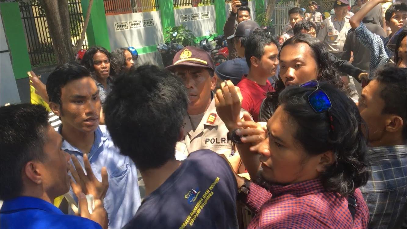 Perseteruan edua kelompok mahasiswa dari organisasi berbeda tersebut terjadi saat berunjuk rasa peringatan Hari Anti Korupsi