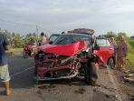 Sepeda motor merk Yamaha Vega Nopol DD 4384 AF melaju dari arah barat ke timur dan bertabrakan dengan mobil.