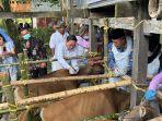 Menteri Pertanian RI atau Mentan, Syahrul Yasin Limpo bersama anggota Komisi IV DPR RI, Sutrisno memantau pengobatan hewan ternak