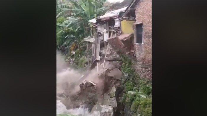 Beredar di media sosial rekaman detik-detik rumah ambrol. Rumah yang mendadak ambrol itu berada di pinggir sungai.